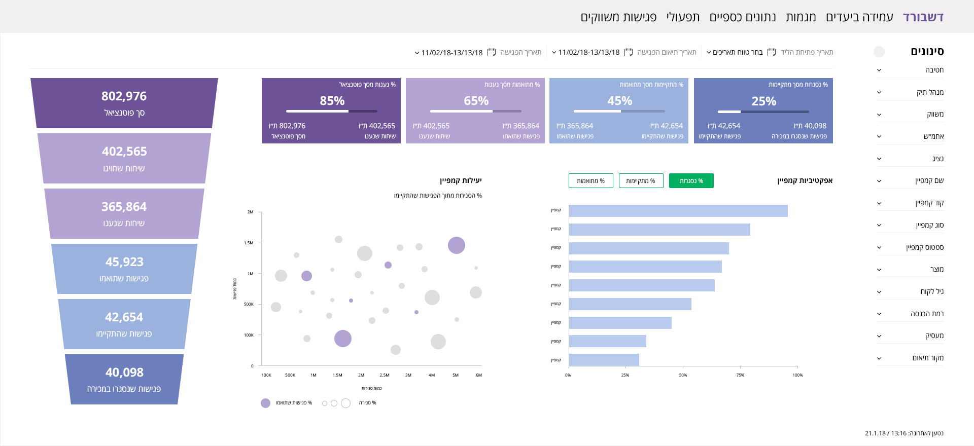 This system measures and compares the company’s commercial marketing campaigns, starting with the call center representatives and ending with sealed deals by the agents.